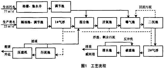 設(shè)計(jì)生產(chǎn)廢水水量23m³/d,生活污水水量77m³/d,總水量100m³/d。具體的水質(zhì)見表l。