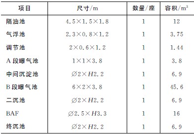 主要處理構(gòu)筑物設(shè)計(jì)參數(shù)見(jiàn)表1,主要設(shè)備參數(shù)見(jiàn)表2。