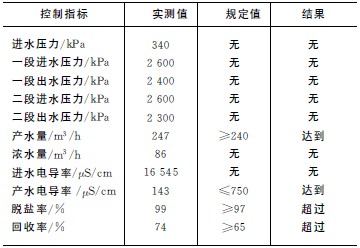 反滲透系統(tǒng)運行參數(shù)如表3所示。