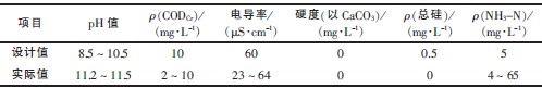 表1 水源水質(zhì)和補(bǔ)水標(biāo)準(zhǔn)