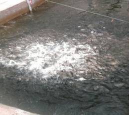 經過兩周的穩(wěn)定運行,研究人員往兩個大池子中共放入鯉魚魚苗四千斤,開曝氣和回流,一周后開始喂食和定期檢測水質,檢測水質主要指標為氨氮和亞硝酸鹽,并定期檢測池中pH、溶解氧、總磷、COD、總氮等數(shù)據(jù)。