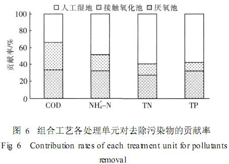 組合工藝各處理單元對去除污染物的貢獻率如圖6所示。