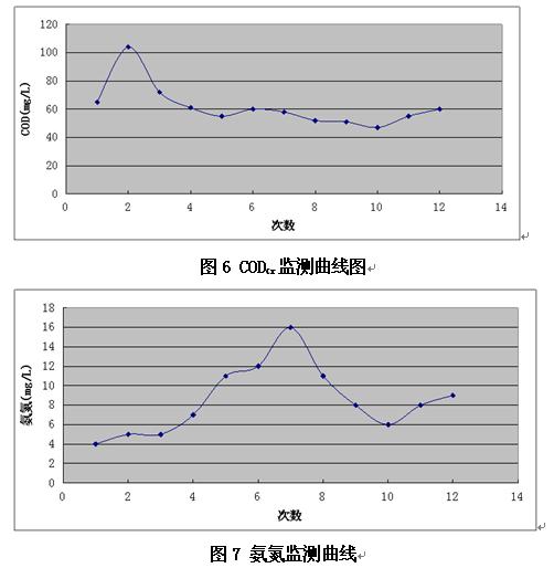 經(jīng)過長期跟蹤觀察監(jiān)測,系統(tǒng)運(yùn)行穩(wěn)定,出水中主要監(jiān)測指標(biāo)CODCr、BOD5、氨氮、SS、pH等均可以穩(wěn)定達(dá)到《城鎮(zhèn)污水處理廠污染物排放標(biāo)準(zhǔn)》(GB18918-2002)二級標(biāo)準(zhǔn)以上。跟蹤監(jiān)測18個(gè)月(自2009年7月,前六個(gè)月每月一次,后每兩月一次),其CODCr、氨氮監(jiān)測數(shù)據(jù)如圖6、圖7所示具體參見http://wlmqsb.com更多相關(guān)技術(shù)文檔。