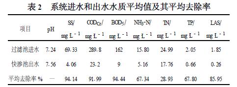 (4) 提高系統(tǒng)的總污染物去除效率?傊,過濾池的引入,可以有效減緩SS 在快滲池中的積累、提高系統(tǒng)的水力負荷、增強系統(tǒng)抗負荷沖擊能力和改善系統(tǒng)出水水質(zhì)。