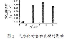 2. 2 氣水比對(duì)反應(yīng)器容積負(fù)荷的影響