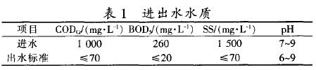 由于造紙過(guò)程中加入了大量滑石粉,使廢水懸 浮物的濃度很高,非溶解性COD比例較高。污水處 理站的出水水質(zhì)要求低于焦作市環(huán)保局要求的地方 一級(jí)標(biāo)準(zhǔn).具體進(jìn)出水水質(zhì)見(jiàn)表1。