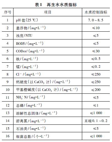 作為間冷開式冷卻系統(tǒng)的補(bǔ)充水時,其水質(zhì)應(yīng)符合《工業(yè)循環(huán)冷卻水處理設(shè)計規(guī)范》( GB50050 - 2007) 中規(guī)定的再生水水質(zhì)標(biāo)準(zhǔn)。如表1 所示。