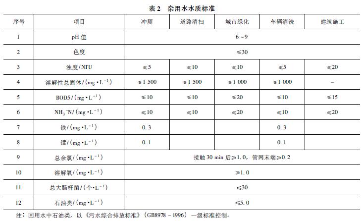 作為企業(yè)內(nèi)部雜用水的水質(zhì)應(yīng)符合《城市污水再生利用城市雜用水水質(zhì)標(biāo)準(zhǔn)》( GB /T18920- 2002) 見表2。