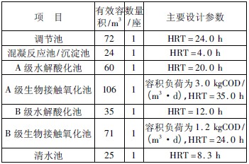 表2 主要構(gòu)筑物及設(shè)計(jì)參數(shù)