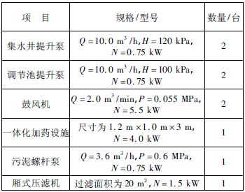 表3 廢水處理系統(tǒng)主要設(shè)備