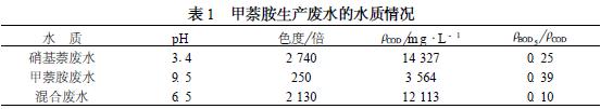 1 甲萘胺廢水水質(zhì)、水量情況