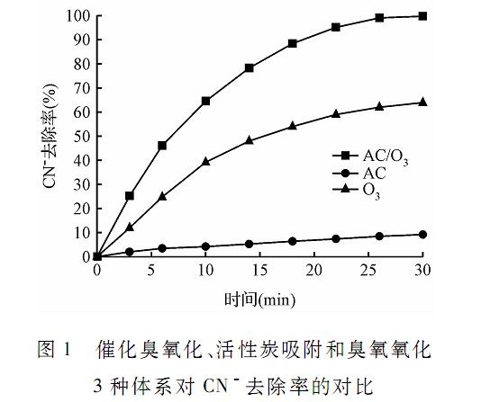 非均相催化臭氧化方法是一種高效的處理技術(shù),可有效將水體中的氰化物降解,已有報道用活性炭催化臭氧化處理含氰廢水,該工藝無二次污染且除氰效率高,具有很高的實用價值,因此研究活性炭?臭氧體系處理含氰廢水作用機理具有很高的理論意義。