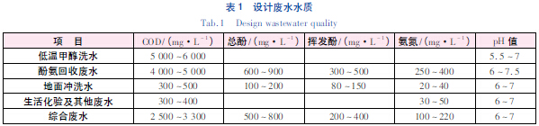 內(nèi)蒙古某煤制尿素工程廢水主要包括低溫甲醇洗水、酚氨回收廢水、地面沖洗水、生活化驗(yàn)及其他廢水,綜合廢水量為360 m3/h,設(shè)計(jì)水質(zhì)見(jiàn)表1。