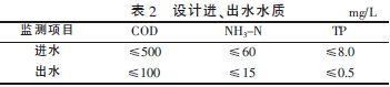 試驗設(shè)計進、出水水質(zhì)如表2所示。