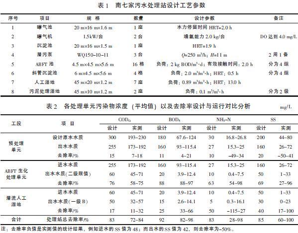 包括曝氣池、沉淀池、ABFT、人工潛流濕地及設備用房等,工藝配置參數詳見表1。