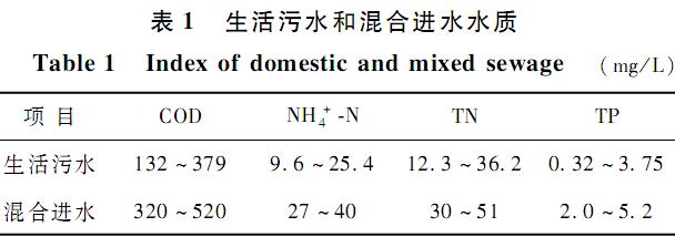 本研究反應(yīng)器進水采用生活污水與模擬污水按體積比1:1混合,以保證進水水質(zhì)相對波動較小。表1所示為生活污水水質(zhì)以及混合進水情況。