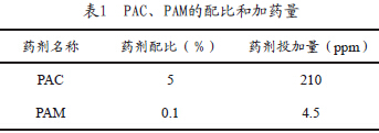 由于該集團(tuán)在生產(chǎn)過(guò)程中使用大量的活性炭,且原材料中混入較多較小的雜質(zhì),因此預(yù)處理系統(tǒng)的運(yùn)行良好與否,直接關(guān)系到后續(xù)生化系統(tǒng)的穩(wěn)定運(yùn)行。預(yù)處理系統(tǒng)的調(diào)試關(guān)鍵為格柵和氣浮。應(yīng)保證機(jī)械格柵的良好運(yùn)行,格柵攔截較大的條狀物,防止水泵被堵塞。氣浮處理裝置的去除率,關(guān)鍵是控制反應(yīng)的加藥量,通過(guò)燒杯實(shí)驗(yàn)及現(xiàn)場(chǎng)調(diào)試實(shí)際情況,原水pH在6.0~6.8之間,直接投加混凝劑及絮凝劑,反應(yīng)效果不佳。通過(guò)調(diào)整pH和加藥量,當(dāng)pH調(diào)整為在7.5~8.0時(shí),混凝效果良好,礬花凝聚成團(tuán)。PAC、PAM的配比和加藥量如下表所示。