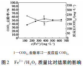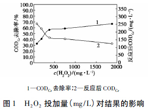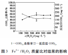 2. 1 CODCr/H2O2投加質(zhì)量比(H2O2投加量影響)