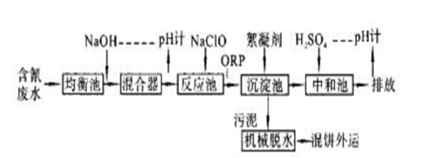 含氰廢水不完全氧化處理工藝流程: