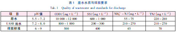 原廢水處理系統(tǒng)中UASB 反應(yīng)器在水溫為(37±1)℃、容積負(fù)荷為4~6kgCOD/(m3·d) 條件下,對(duì)COd的去除率穩(wěn)定在90% 以上,厭氧出水COD為800~1 000 mg/L,VFA(揮發(fā)性脂肪酸) 為3~5mmol/L,CaCO3堿度為4 200 mg/L 左右,沼氣產(chǎn)量為6 000~7 000 m3/d。原UASB 反應(yīng)器對(duì)NH4+-N、有機(jī)氮幾乎沒有去除效果,UASB 出水NH4+-N高達(dá)210~270 mg/L。由于廠區(qū)用地緊張,環(huán)?捎玫貎H為約360 m2,新增的好氧系統(tǒng)需能去除廢水中殘余COd并脫氮。