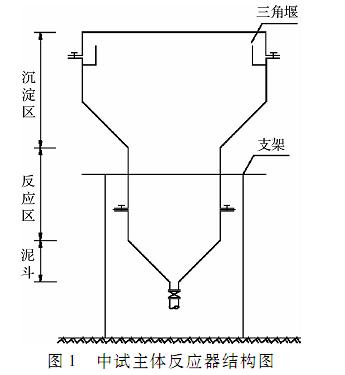 主反應(yīng)器由反應(yīng)區(qū)、沉淀區(qū)和泥斗3部分組成(圖1)。反應(yīng)區(qū)有效容積98L,沉淀區(qū)有效容積311L。原水通過(guò)反應(yīng)區(qū)底部進(jìn)入反應(yīng)器,通過(guò)頂部三角堰出水。具體參見(jiàn)http://wlmqsb.com更多相關(guān)技術(shù)文檔。