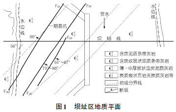 壩址區(qū)地質平面簡圖見圖1。