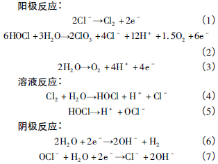 此時,溶液中生成的OCl-具有強氧化性,能氧化廢水中的污染物質,污染物質的去除以間接氧化為主。因陽極反應、溶液反應產生H + ,而陰極反應產生OH-,所以此時廢水的pH 值有一定的波動。但隨電解時間的延長,廢水中Cl-濃度逐漸降低,反應機理可能從間接氧化往直接氧化轉換。這時,污染物質在陽極上直接氧化而失去電子,水在陰極上接受電子,產生OH-,從而使廢水pH 值不斷上升。
