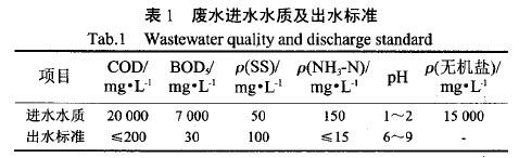山東淄博某醫(yī)藥化工公司以頭孢類醫(yī)藥中間體的科研、生產(chǎn)為主,涉及基礎原料、中間體和原料藥三大產(chǎn)業(yè)領域,主導產(chǎn)品有氨噻肟酸、AE-活性酯、呋喃銨鹽、頭孢他啶活性酯、N,N/-二環(huán)己基碳二亞胺等。廢水中主要含有甲醇、甲苯、二甲苯、硫脲、氯仿、硫氰酸銨、環(huán)己胺和二硫化碳等,污染物成分復雜,含鹽濃度較高,有一定毒性,不易生物降解。其進水水水質(zhì)和出水標準(山東省小清河流域水污染物綜合排放標準(DB 37/656-2006表2)一般保護區(qū)域最高允許排放濃度標準)見表1。