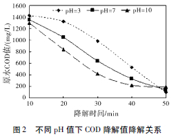 2. 1 pH 值對(duì)原水COD值降解的影響