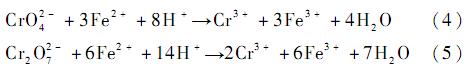溶液中Cr(VI)會被Fe2+還原,反應(yīng)式為: