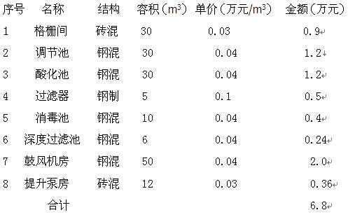 工程投資總額17.796萬元,按工程投資折合投資指標(biāo)為1483元/m3•d,而按有關(guān)行業(yè)標(biāo)準(zhǔn),或現(xiàn)有生活廢水一體化處理工程實(shí)踐,像這類高有機(jī)物濃度的廢水,投資指標(biāo)應(yīng)為4000~6000元/m3•d,這表明我們的工程投資指標(biāo)降低了3倍左右。