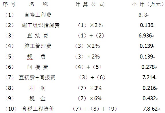 工程設(shè)計(jì)費(fèi)=(土建工程費(fèi)+設(shè)備設(shè)施及器材購(gòu)置及安裝費(fèi))×2%=(7.862萬+9.25萬)×2%=0.342萬。