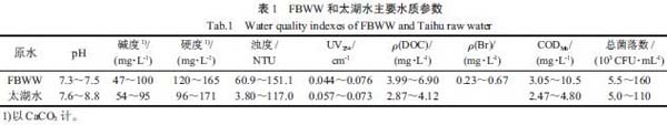 因此,與太湖水相比較,F(xiàn)BWW 濁度、有機(jī)物指標(biāo)(UV254,DOC 含量和COD)均較高,如果作為凈水處理廠的原水進(jìn)行回用,將增加水廠各處理單元的負(fù)荷。