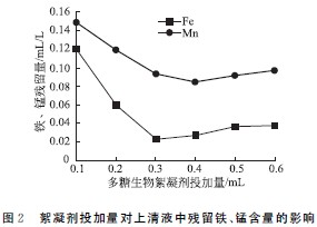 2.2 多糖生物絮凝劑投加量對鐵、錳去除率的影響