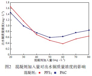2.2 混凝劑加入量對(duì)出水銅質(zhì)量濃度的影響