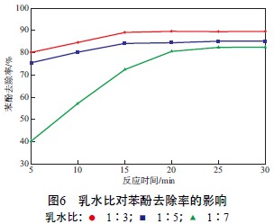 2.5 乳水比對(duì)苯酚去除率的影響具體參見http://wlmqsb.com更多相關(guān)技術(shù)文檔。