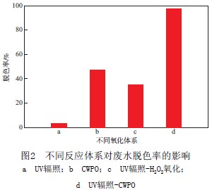2.1 不同反應(yīng)體系對廢水脫色率的影響