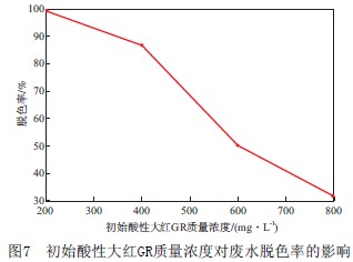 2.6 初始酸性大紅GR質(zhì)量濃度對廢水脫色率的影響