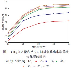 2.1.1 ClO2加入量及反應時間對氧化出水聯(lián)苯胺去除率的影響