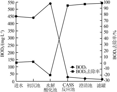3.2 對(duì)BOD5的去除效果