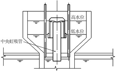 (1)脈沖布水器和顆粒污泥。PAFR內(nèi)設(shè)有自動高效脈沖布水器(見圖 2),僅消耗部分勢能,無潛水?dāng)嚢璧容o助設(shè)備。脈沖布水利用虹吸管中快速流動的水流將主管道中的空氣帶走,使主管道內(nèi)形成一定的真空度,在管道內(nèi)外大氣壓作用下池內(nèi)的水進入主管道后排入池中。由于水流速度快,布水在短時間內(nèi)即可完成,達到脈沖效果。脈沖作用將池底高濃度污泥攪起,使池內(nèi)泥水充分混合,厭氧菌與廢水中的有機物充分接觸;底部采用穿孔布水管布水均勻,可使泥水充分混合,利用兼氧、厭氧菌等生物群體的綜合作用,提高廢水的可生化性。在PAFR啟動階段,接種在PAFR中的普通絮狀污泥,通過脈沖布水的沖擊作用形成連續(xù)的上升-下降過程,污泥不斷互相碰撞、摩擦,易形成致密結(jié)構(gòu)的顆;勰唷