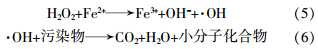 Fenton反應是Fe2+和H2O2組成的體系,自20世紀60年代,F(xiàn)enton試劑已被用于處理廢水方面。Fe2+和H2O2混合產(chǎn)生具有強氧化力的·OH,能部分分解或完全礦化污染物,其反應機理如下式所示: