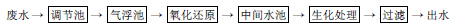 廢水首先進入氣浮池,去除廢水中的懸浮物和油類,然后再進行氧化還原反應,去除廢水中的六價鉻及其他重金屬。