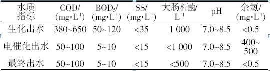 改造后的流程工藝特點(diǎn)如下:(1)保留了原生化處理系統(tǒng),生化處理系統(tǒng)對(duì)生活污水進(jìn)行預(yù)處理,去除部分有機(jī)物及絕大部分懸浮物,降低電催化單元處理負(fù)荷;(2)若生化系統(tǒng)癱瘓,電催化單元可獨(dú)立對(duì)生活污水進(jìn)行處理,通過提高運(yùn)行負(fù)荷,實(shí)現(xiàn)廢水達(dá)標(biāo)排放。