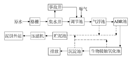 乳品加工廢水主要來(lái)源于容器、管道、設(shè)備、車間的清洗過(guò)程和部分生活污水。其主要污染物有乳蛋白、乳糖、乳脂以及酸、堿等,COD在800~3 500 mg/L,BOD5在600~2 100 mg/L,可生化性好。目前國(guó)內(nèi)外對(duì)乳品廢水處理主要采用物理化學(xué)法(如氣浮)、水解酸化+好氧處理工藝以及厭氧+好氧處理工藝等。本工程針對(duì)河南某乳品加工廠乳品廢水特點(diǎn),采用ABR+生物接觸氧化工藝處理廢水,經(jīng)調(diào)試后工藝運(yùn)行穩(wěn)定,處理效果好,運(yùn)行費(fèi)用低,取得了較好的環(huán)境和經(jīng)濟(jì)效益。