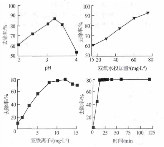 (5)15 min 內(nèi)Fenton 反應(yīng)就能基本完成,通常選擇反應(yīng)時(shí)間為30 min。