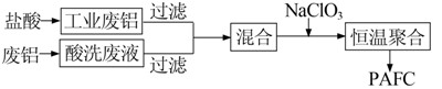 在酸性溶液中,氯酸鈉將Fe2+氧化成Fe3+的同時,溶液中的pH隨之升高,F(xiàn)e3+和Al3+發(fā)生水解反應(yīng),繼而形成單體配離子[Fe(OH)2]+和[Al(OH)2]+。[Fe(OH)2]+和[Al(OH)2]+發(fā)生共聚合反應(yīng)生成高分子聚合物。