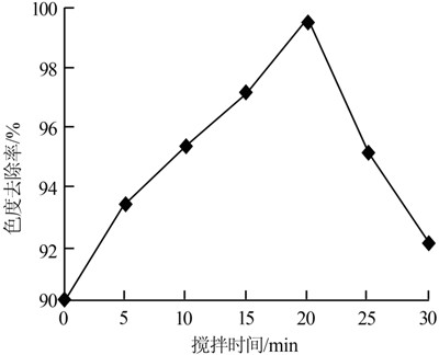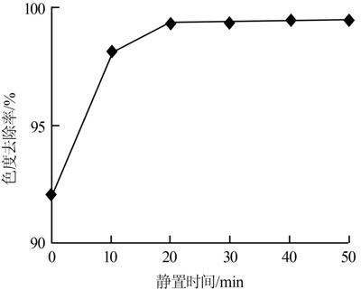 隨著靜置時間的變長,去除率不斷增加,當靜止時間達到20 min后色度去除率達到穩(wěn)定。