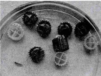 該生物浮動床反應(yīng)器由有機玻璃制成,截面為 0.2 m×0.2 m,有效水深為0.2 m,有效容積約為8 L。進水端設(shè)檔流板,檔流板下端與反應(yīng)器底部留有縫隙,使廢水由下端進入主反應(yīng)區(qū),出水從上端自然流出。反應(yīng)器內(nèi)置加熱裝置,控制反應(yīng)器內(nèi)溫度恒定,底部安裝曝氣設(shè)備,使附著生物膜的填料依靠曝氣的作用在主反應(yīng)區(qū)中呈流化狀態(tài)。反應(yīng)器內(nèi)裝填體積比為50%的聚乙烯懸浮填料,如圖 2 所示。填料外形為小圓柱體狀,填料尺寸為10 mm ×10 mm,比表面積為1 200 m2/m3,圓柱體內(nèi)有十字支撐,外壁帶豎條狀鰭翅,較大的比表面積有利于切割分散氣泡,使布?xì)廒呌诰鶆颉榱朔乐固盍显诘撞砍练e,反應(yīng)器底部抹成斜面。