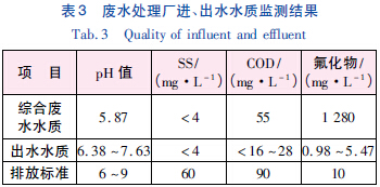 運行期間各項水質監(jiān)測數(shù)據(jù)見表3。